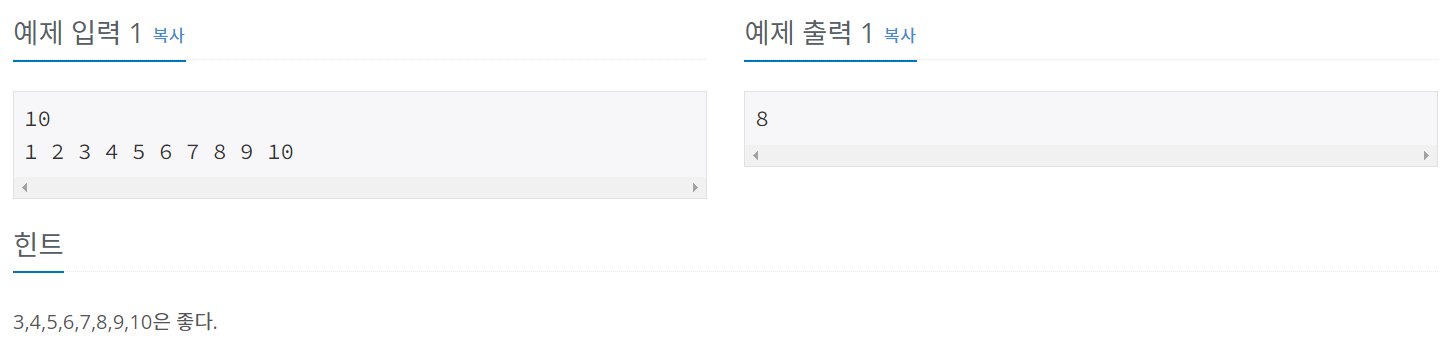 int N = 0, cnt = 0; //N, 좋은 수 개수