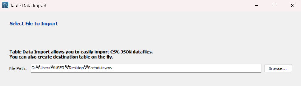 테이블을 찍고 마우스 우클릭을 하면 옵션에 Table Data Import Wizard가 있다.