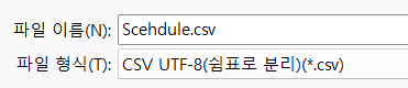 한글 깨짐이 생길 수 있으니 UTF-8로 된 CSV 형식을 사용한다.