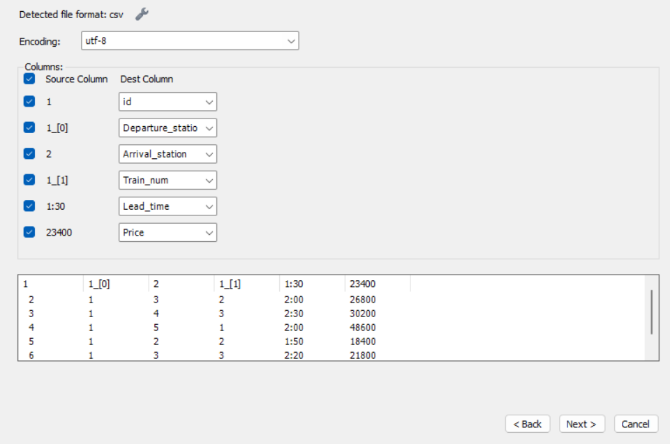 next를 누르고 각 셀에 대응되는 칼럼을 선택한다.
