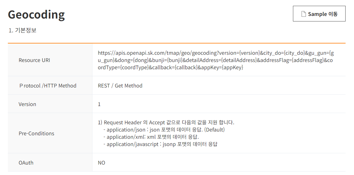 Tmap API의 GeoCoding을 사용해 볼 것이다.