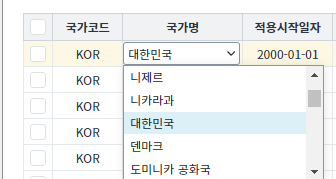 그리드 콤보를 추가할 컬럼을 더블클릭하여 SelectBox 설정을 아래와 같이 해준다.