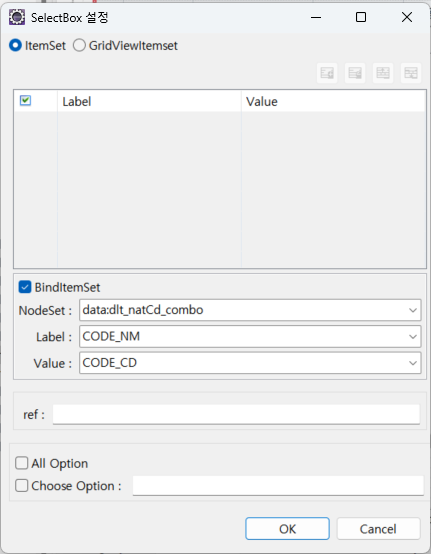BindItemSet 매핑 후 Script 단에서 해당 dataList에 대한 연결을 추가적으로 구현해야 한다.
