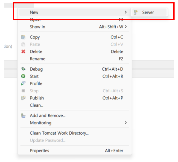 서버 탭이 안 보일 경우 상단 Widow 탭 > Show View > Server 추가