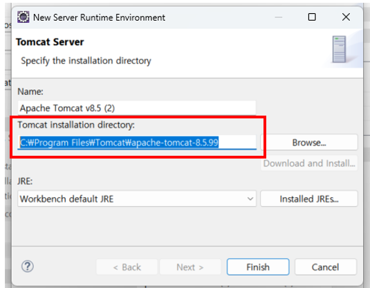 톰캣 설치 경로인 Tomcat installation directory를 볼 수 있다!