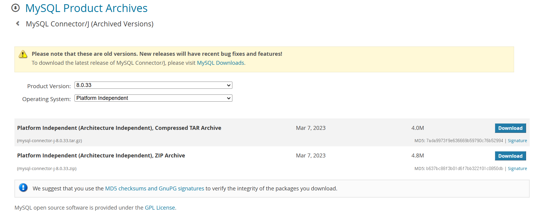 나 같은 경우에는 8.0.33 버전을 다운받았다.