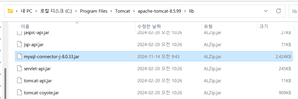 아래 글을 참고하여 올바른 톰캣 경로의 lib에 넣길 바란다.