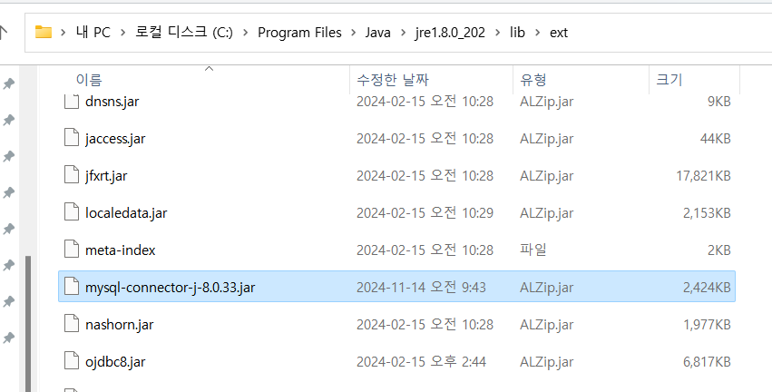 아래 사이트에 접속하여 mysql-connector-j-8.0.33.jar를 다운받는다. 이미 있다면 패스