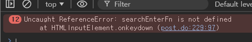 Uncaught ReferenceError: searchEnterFn is not defined at HTML InputElement. onKeydown (post.do.229.97)