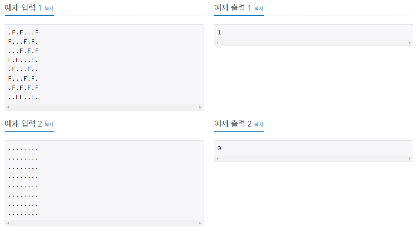// 2차원 배열을 돌면서 하얀 칸 찾기
