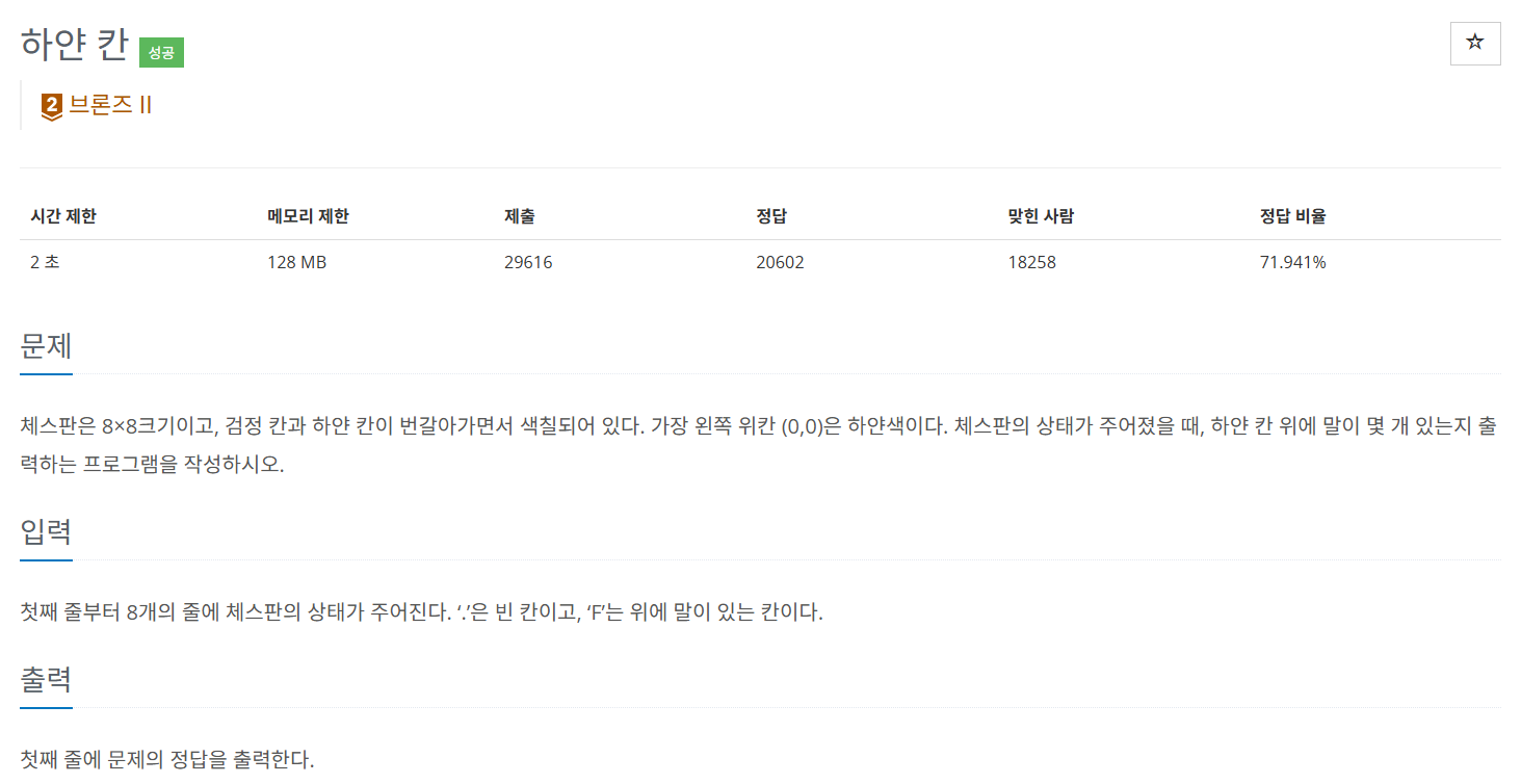 체스판이 8X8이기 때문에 2차원 배열을 사용해도 될 것 같아 적용해본 방식