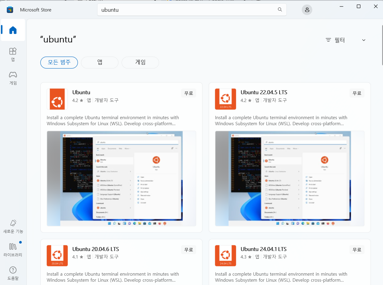 사실 위의 과정들을 진행하면, 이미 wsl이 있으므로 Docker Desktop을 다운받을 필요가 없다.