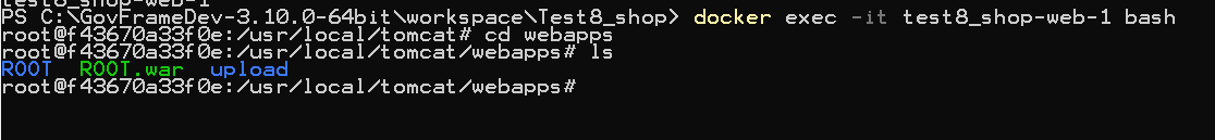 docker 내부 톰캣의 webapps 폴더 경로로 변경해줌