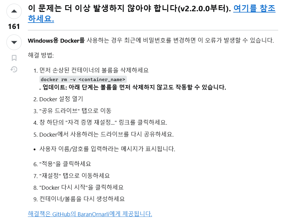 Docker Desktop에서 Windows의 공유 드라이브 설정은 사용자 인증 정보를 활용하여 파일 시스템을 컨테이너에 마운트한다. Linux의 비밀번호가 변경되면, Docker가 이전 인증 정보를 사용하려다 실패하여 마운트 관련 문제가 발생할 수 있다고 한다.