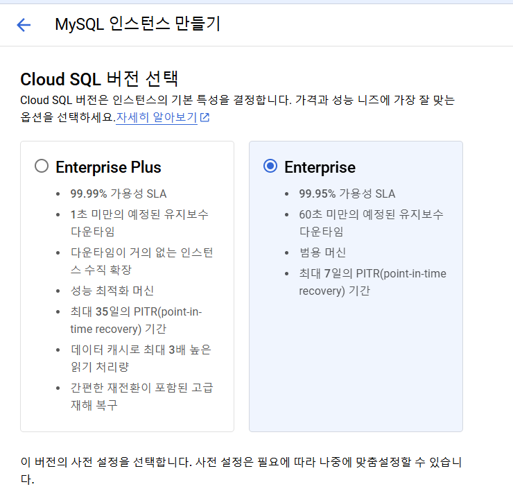> gcloud sql connect {구글 클라우드에서 생성한 mysql명} --user=root