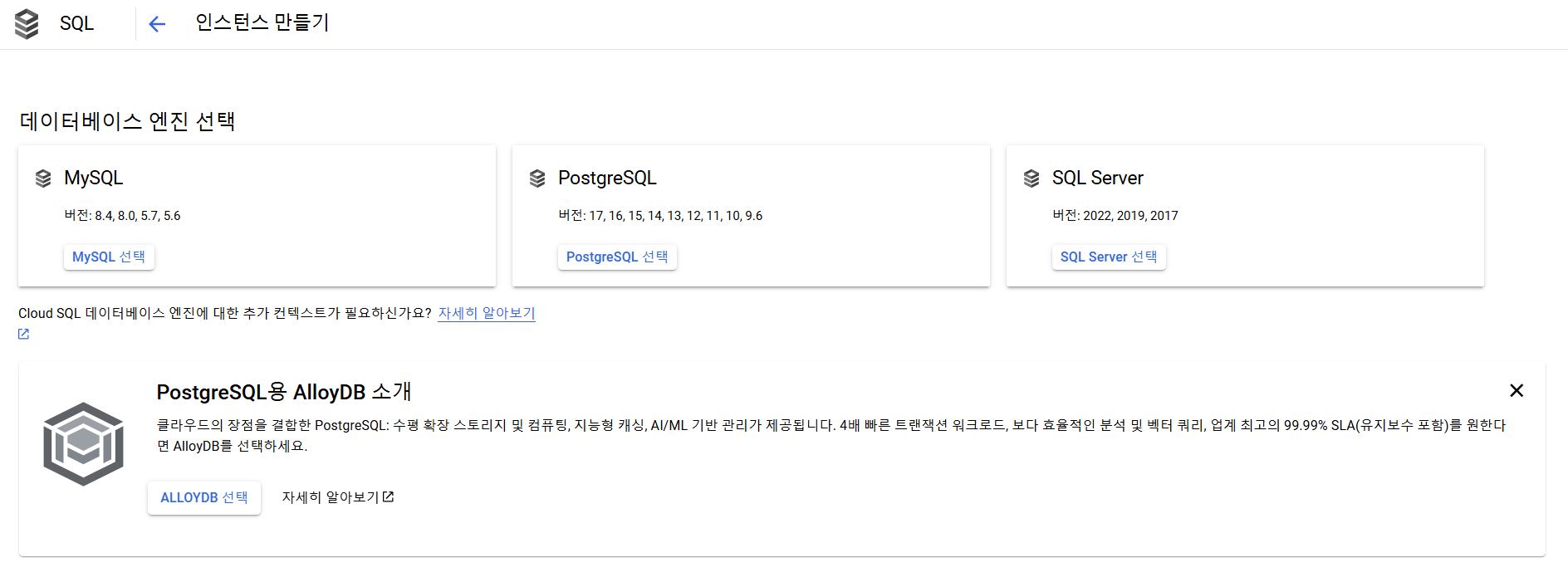 검색 창에 sql을 검색하면 Cloud SQL 서비스가 나온다.