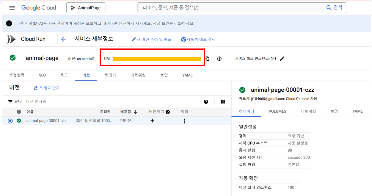 Google Cloud Run 서비스에서 새 버전 수정 및 배포