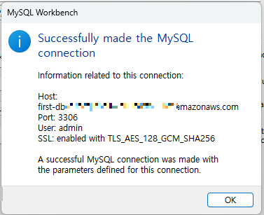 라우팅 추가 이후 MySQL Workbench에서 정상 연결됨을 확인!